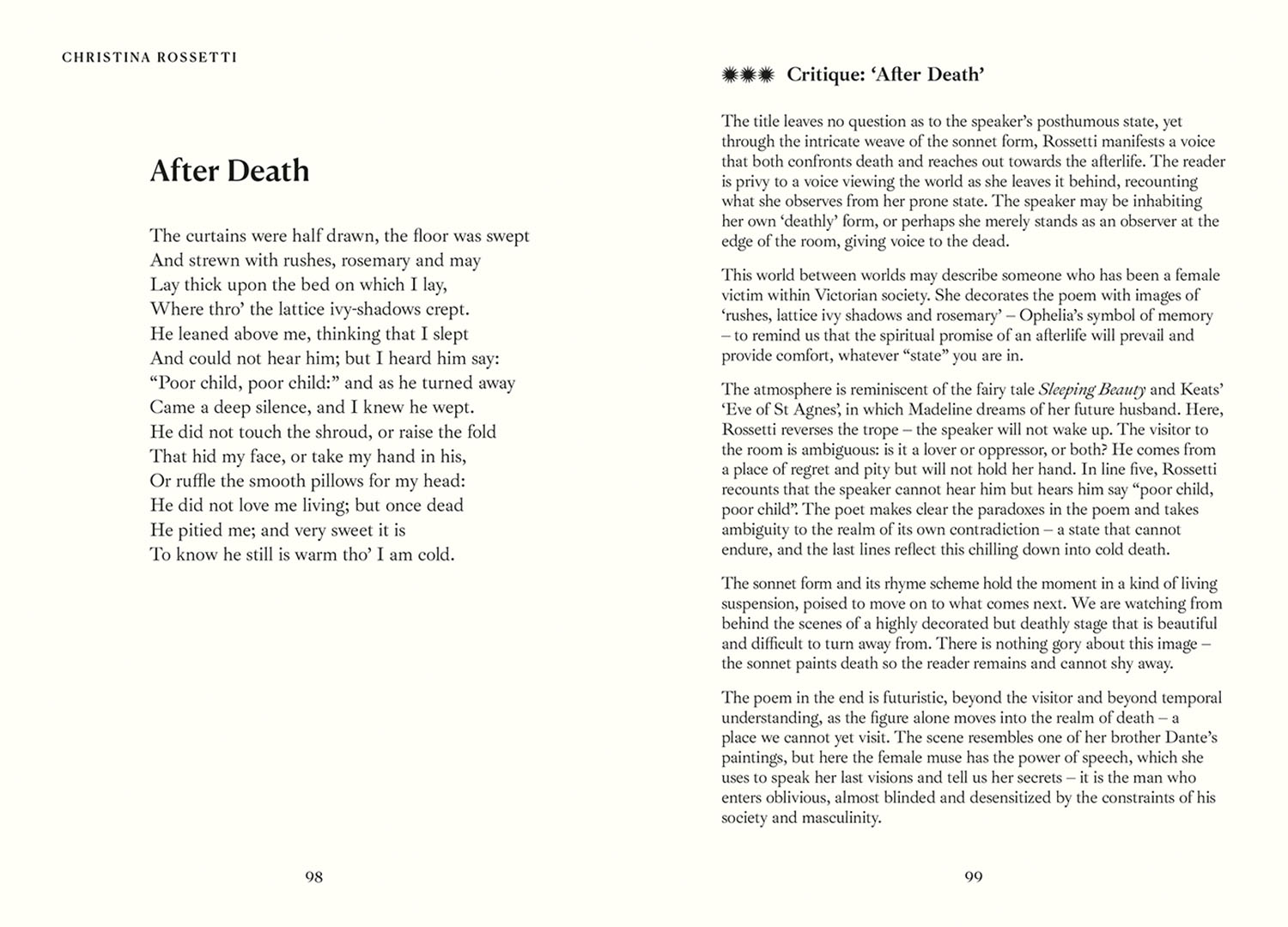 As one of the greatest female poets of the Victorian period, Christina Rossetti's works have always fascinated readers. Her verse explored a diverse range of poetic forms that feels accessible yet is complex in its portrayal of emotion, devotion and love.