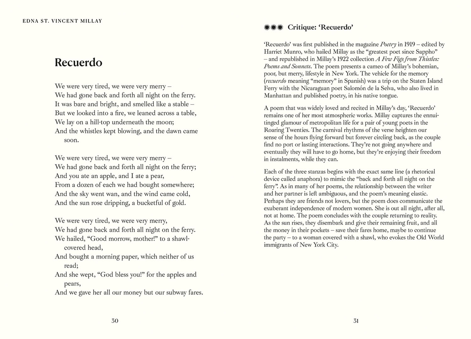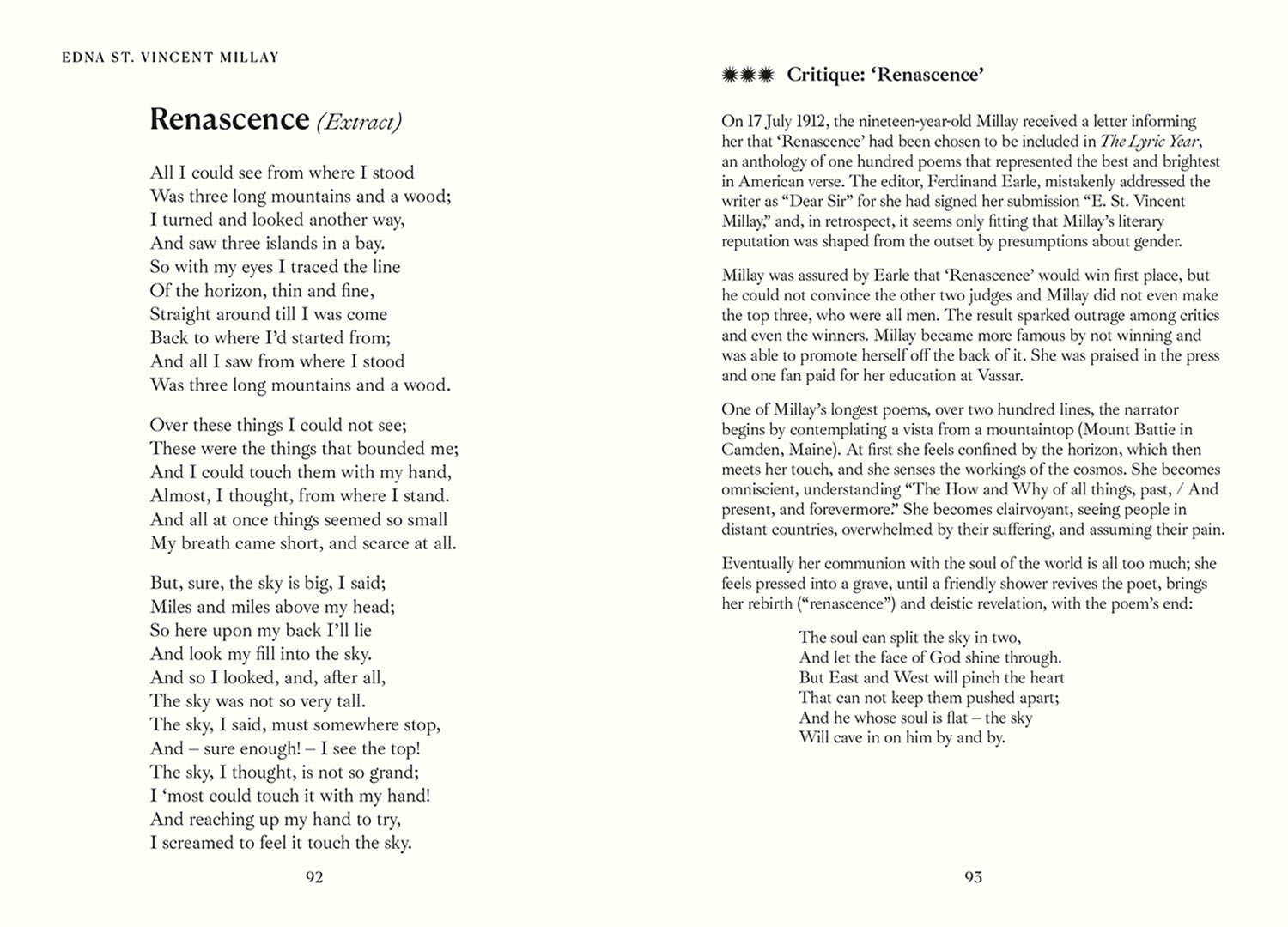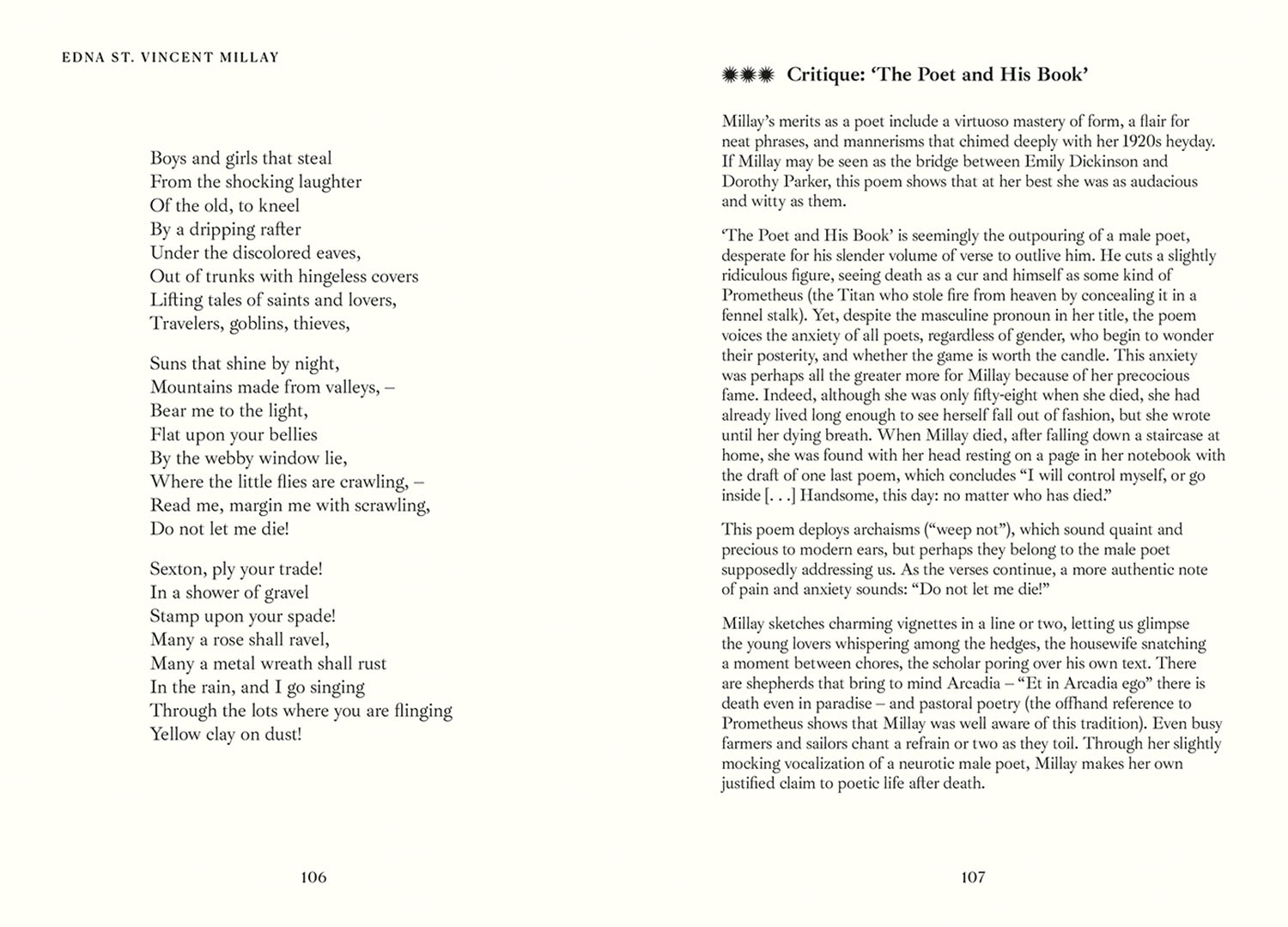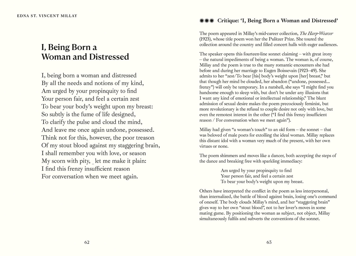 Poet and literary critic Pelé Cox writes an introduction to the collection and analyses eight of the more complex poems, and, providing readers with a fresh look at Millay's iconic works.