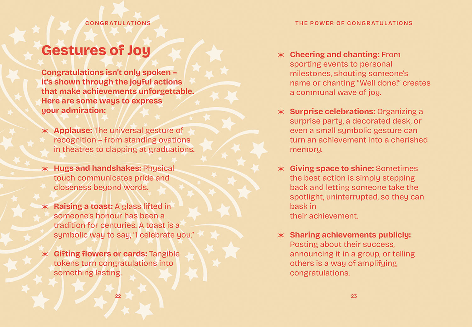 If someone you know recently has reached a milestone, experienced a positive event or achieved something fantastic, then The Pocket Congratulations is for you. Packed with celebratory quotes, positive affirmations and ways to celebrate in style, this volume is the perfect way to show someone how proud they have made you.Whether your loved one has recently graduated school, received a promotion or had a baby, this bright and bold book is sure to make them feel special.